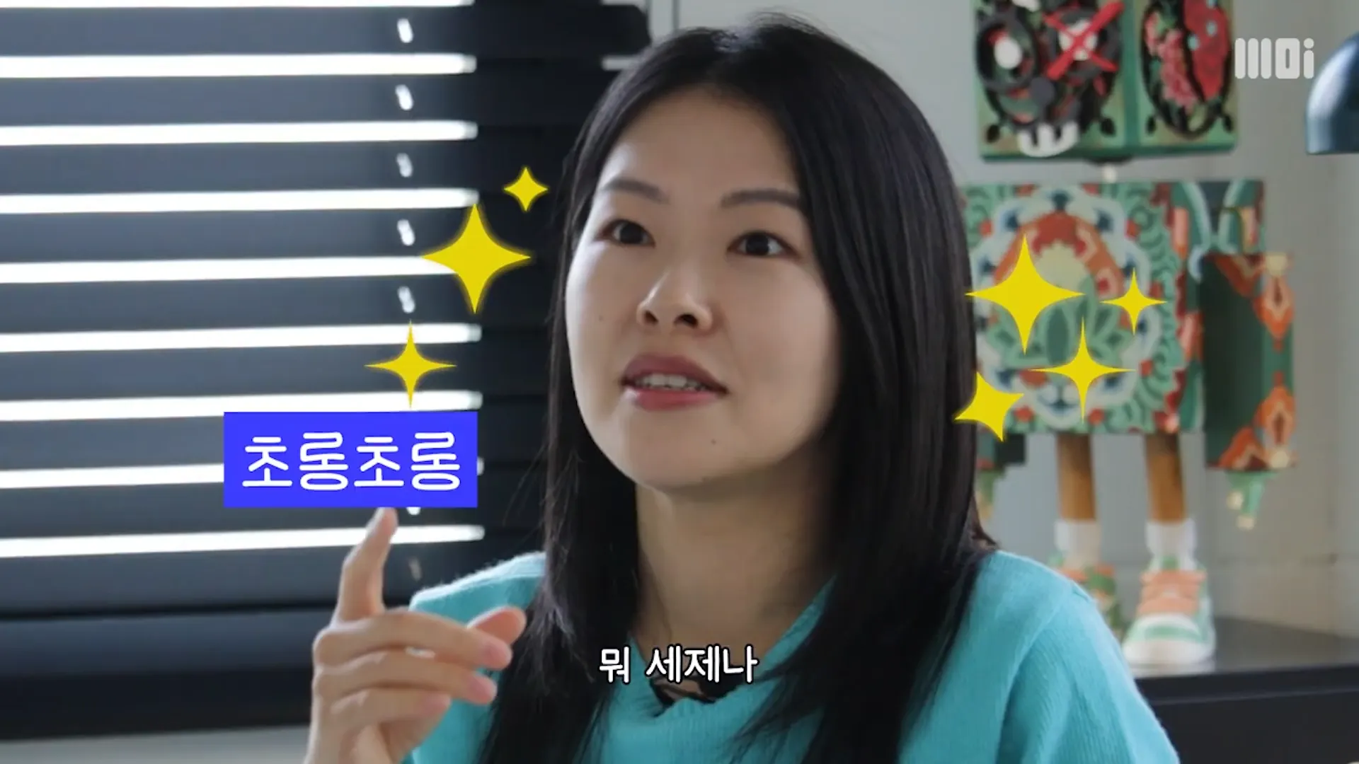 은령의 인터뷰 영상 캡처. 은령이 번뜩이는 표정으로 하고 싶은 일을 이야기하고 있다. 은령의 얼굴 주위로 반짝이는 효과와 ‘초롱초롱’이라는 자막이 적혀 있다.