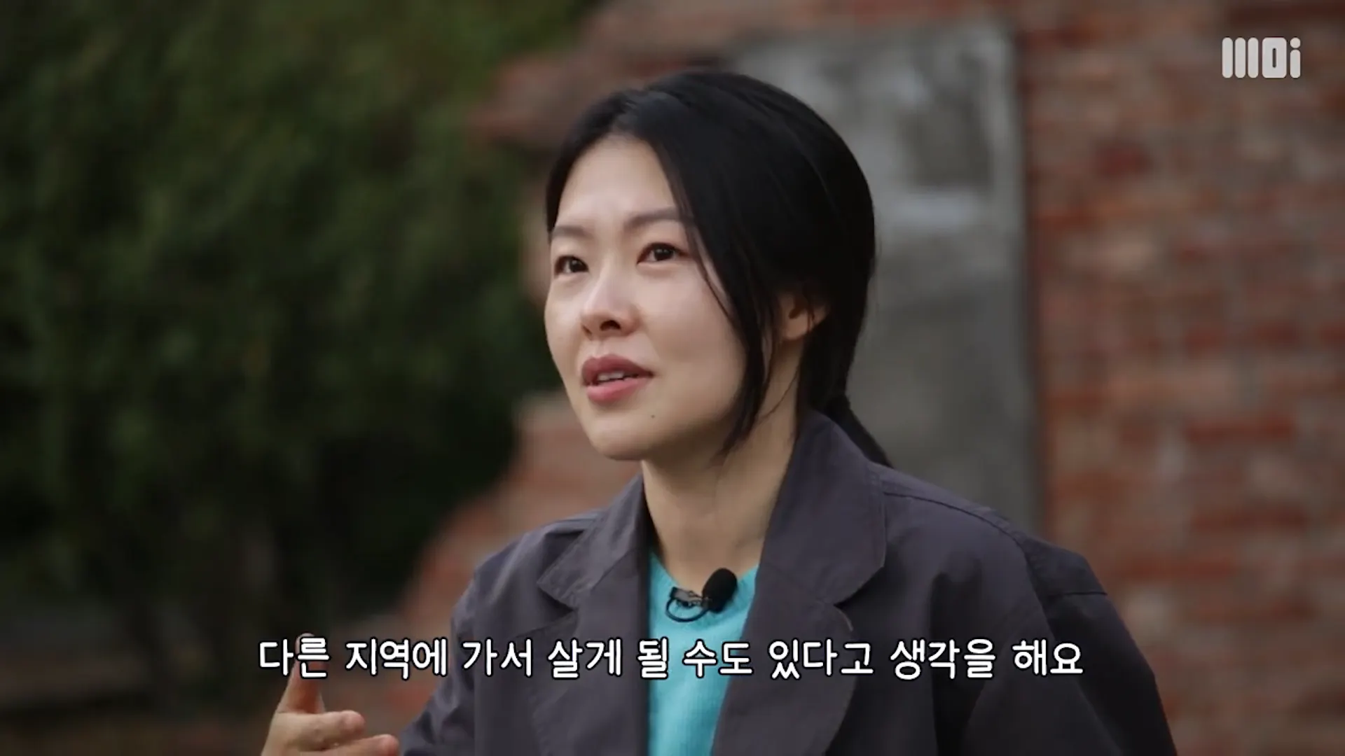 야외에 앉아 인터뷰하는 은령의 상반신 모습. 하단에는 ‘다른 지역에 가서 살게 될 수도 있다고 생각을 해요’라는 자막이 적혀 있다.